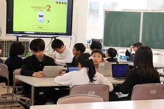プログラミング学習を行いました。学校運営協議委員の竹下さんにご指導いただき、パソコン画面に映るロボットを思いどおりに動かすためのプログラムづくりに挑戦しました。子どもたちは「どう動かせばいいかな」と試行錯誤を重ねながら、プログラムを組み立てていました。