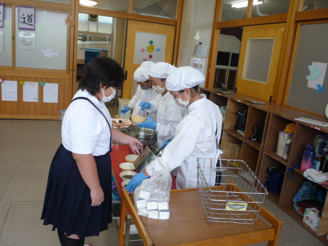 給食時間に視聴するために、映像で保存し、ロイロノートを使って、全校に配信しました。
