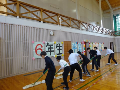 3月5日(水)、高学年の児童が体育館の床をオイルぶきしました。