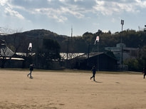 学校のグランドでは、子ども達(学童)が元気に凧揚げをしていました。