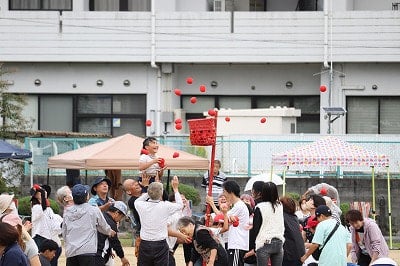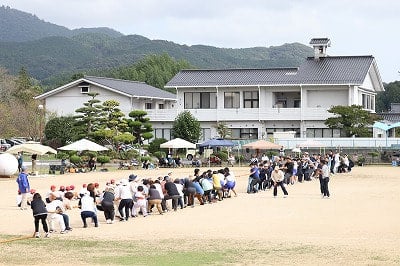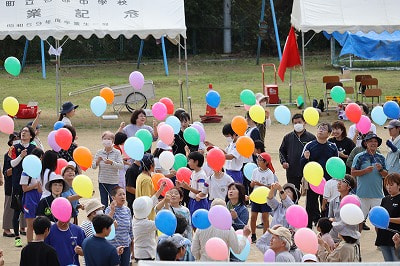 小学生による応援合戦では、力いっぱいの声援がグラウンドに響き渡り、紅白だけでなく、吉部地域の応援も行いました。また、150周年記念競技として綱引きを行い、世代を超えて一緒に汗を流すことで絆がさらに深まりました。運動会の最後には、風船飛ばしを行いました。色とりどりの風船が空に舞い上がり、未来への希望とともに次の世代へとバトンをつなぐ象徴的な瞬間となりました。