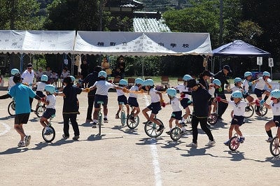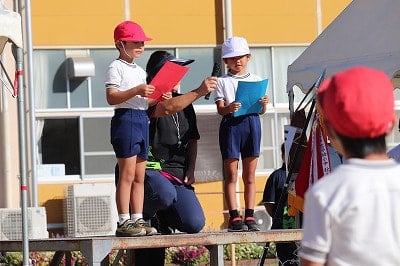 今年は、暑い日が続き、十分な練習を行うことができませんでしたが、子どもたちは、秋晴れの空のもと、一生懸命に演技をしました。