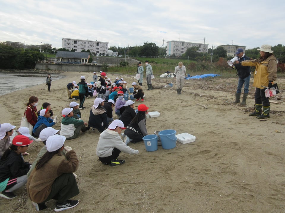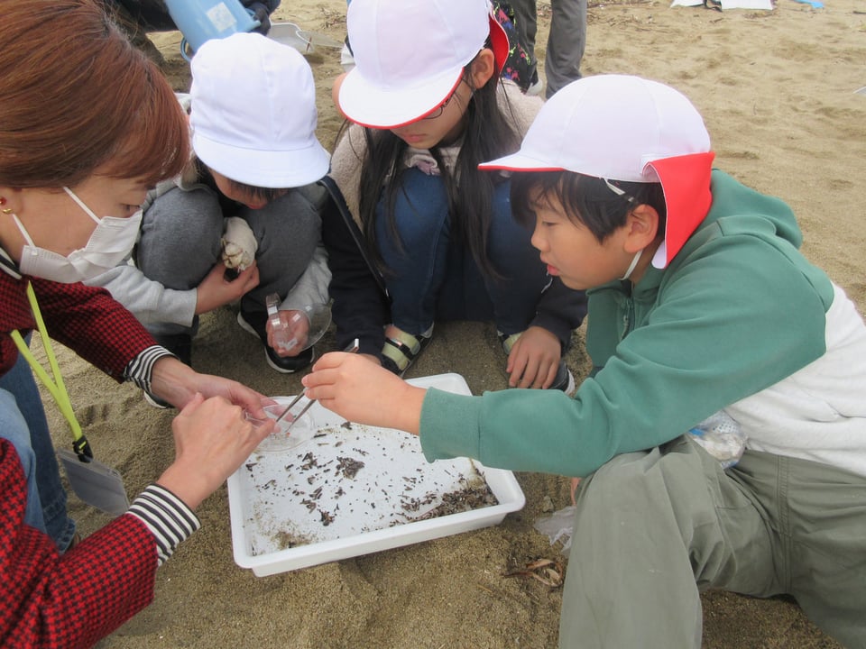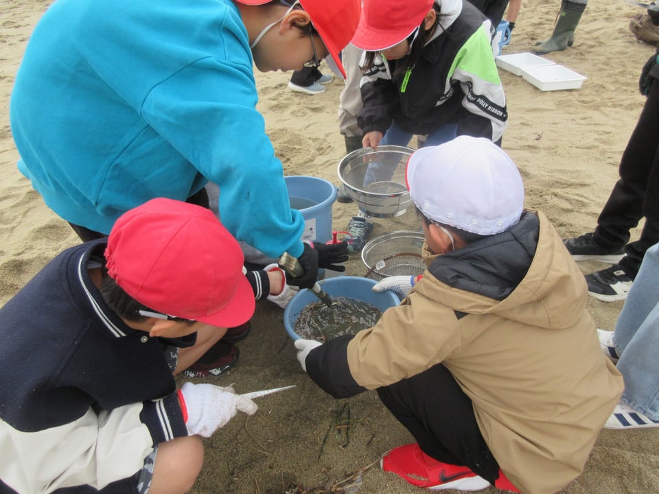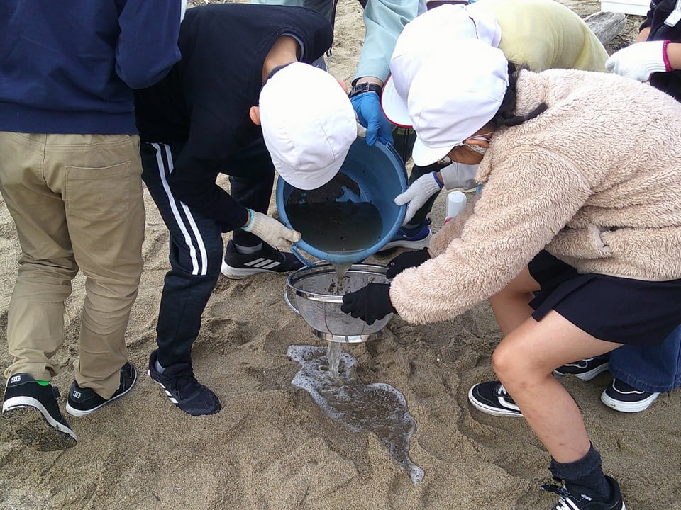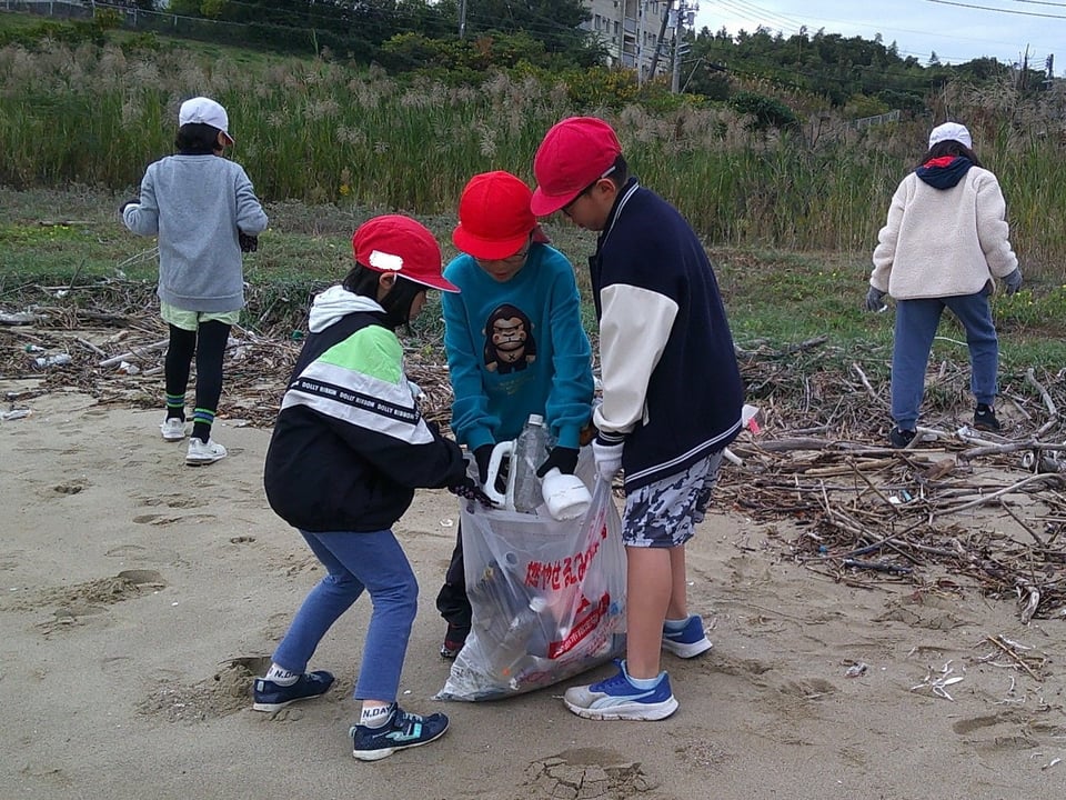 3年生が東岐波の海岸に行き、環境学習を行いました。環境政策課の職員の皆さんのご指導で、海岸の清掃活動をした後、浜辺の砂を掘りマイクロプラスチックの調査をしました。子どもたちは、ふるいにかけたり水に浮かせたりしながら、砂の中からマイクロプラスチックを取り出し、プラスチックの種類や数を調べていきました。この調査を通してたくさんのマイクロチップが海に流れ出し、環境を悪化させていることに気づいていました。帰校後は、学習をもとに自分たちが環境を守るためにできることを考えました。今日の学びが環境保全の行動に結びついていくようにしていきたいと考えています。