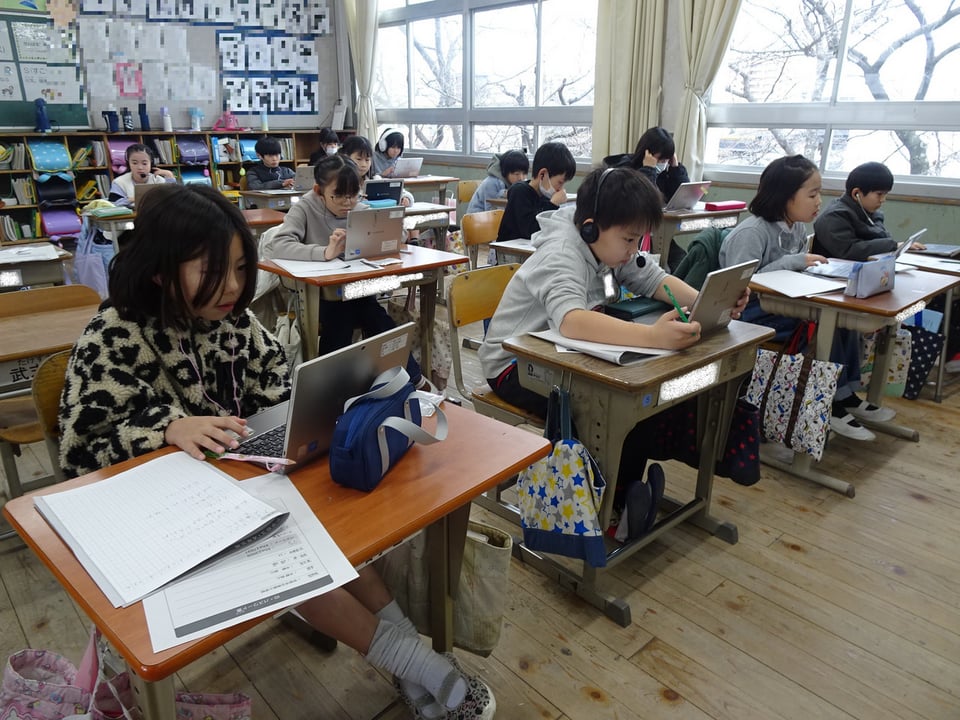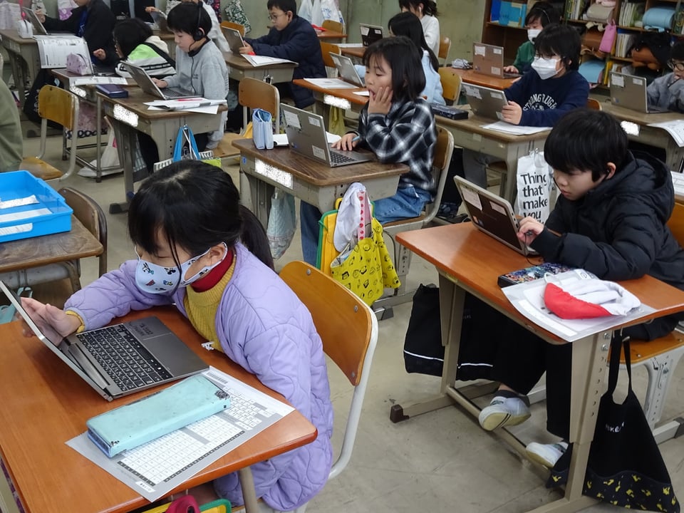 昨日に続き、今日は3年生が国語と算数の学力定着状況確認問題に取り組みました。3年生もCBT(Computer Based Testing :一人一台端末を使用する調査)ということで、解答をタブレットで打ち込んでいきました。音声を聞いたり動画を見たりして答える問題もあり、みんな集中して問題に取り組んでいました。