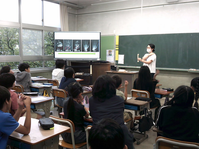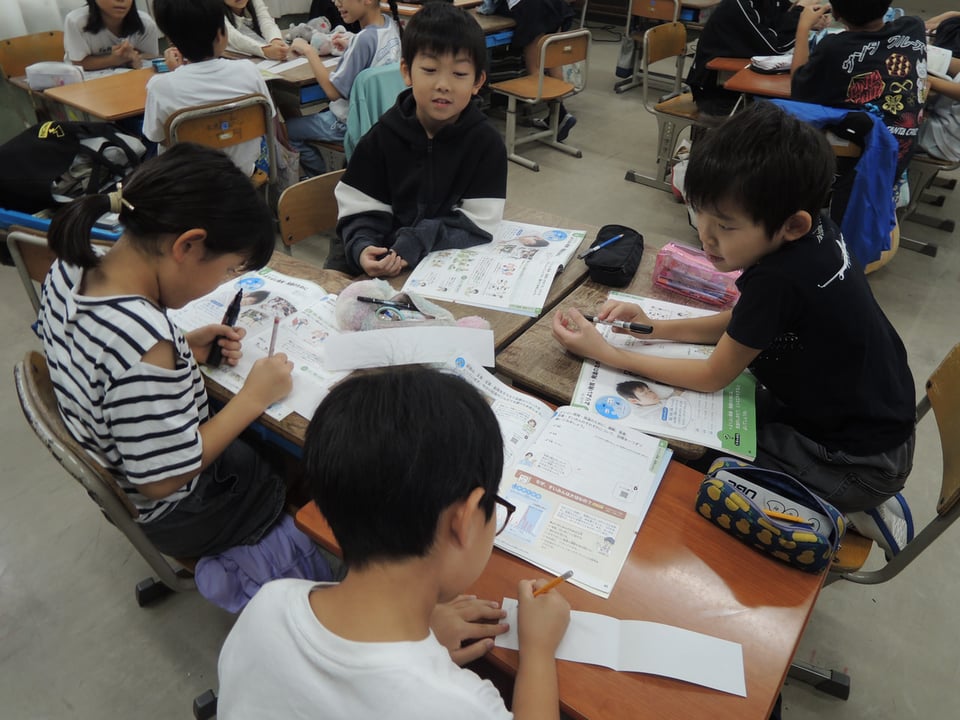 「よりよい発育のために」というテーマで、4年生の巡回栄養指導がありました。最初に赤ちゃんの骨のレントゲン写真を見て、体がよりよく育つためにはどんなことが大切かをグループで考えました。そして、食事・運動・睡眠の3つが大切であることを教えていただきました。次に、食事によって、たんぱく質・カルシウム・ビタミンなどの栄養素をとることができることを学び、給食の献立表を調べながら、これらがバランスよくしっかりと含まれていることを知りました。最後に自分の生活の仕方をチェックし、これから気をつけていきたいことを書きました。子どもたちにとって生活習慣を見直すよいきっかけになるといいなと思います。