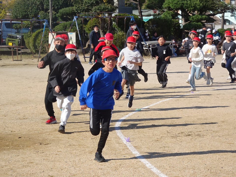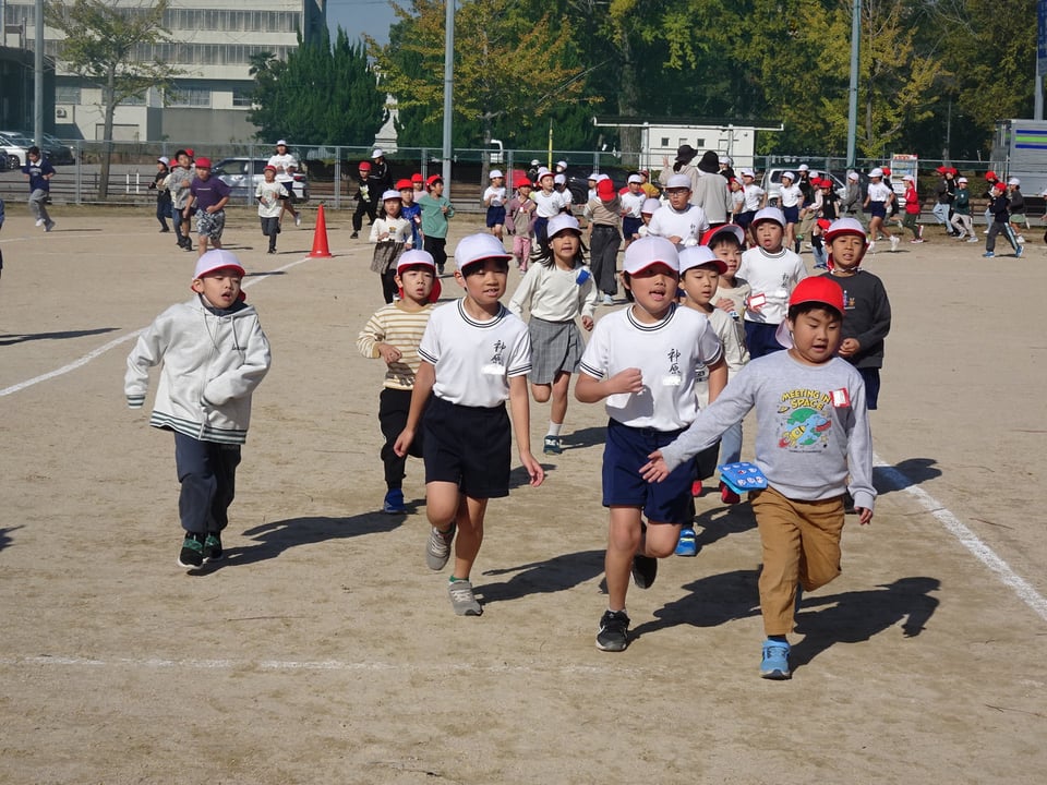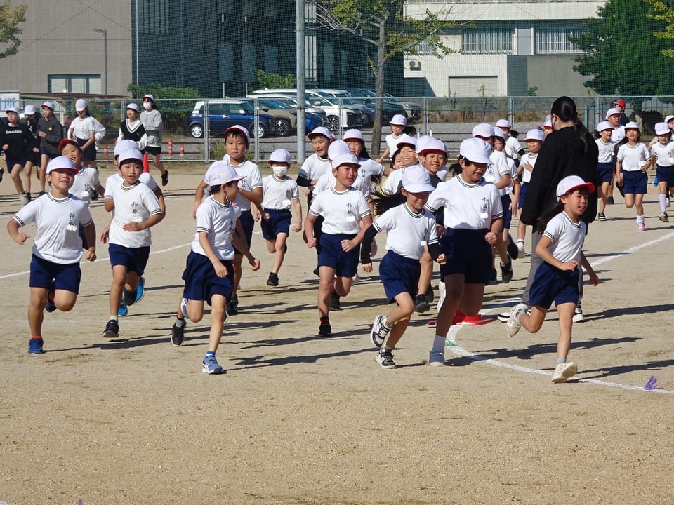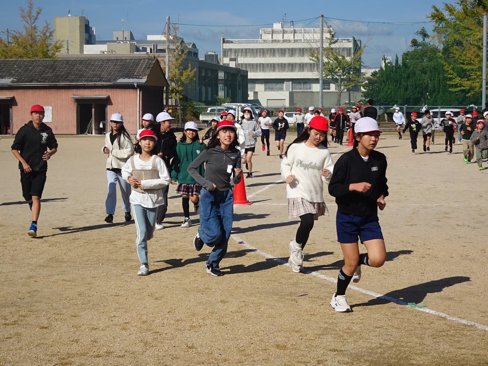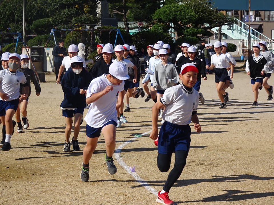 11月26日の持久走大会に向けて、今日から週2回の持久走練習(ランタイム)が始まりました。運動場に出て準備運動をした後、全校児童が勢いよく走り出しました。子どもたちは息を切らせながらも約5分間、曲に合わせて自分のペースで走り続けました。本番に向けて自分の目標に向かって頑張っていってほしいと思います。