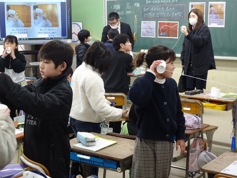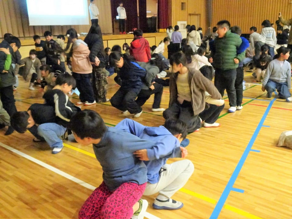 今日は3学期最初の参観日でした。1・2年生は言葉の学習をしたり、自分で作った物語の発表をしたりして、落ち着いて学習に取り組んでいました。3年生は音の学習で、糸電話を作って親子で楽しみながら実験をしていました。4年生以上は学校保健安全委員会に参加し、医療生活協同組合健文会の理学療法士の先生から、体力向上をテーマに、体幹を鍛えることの大切さを学びました。たくさんの運動メニューを紹介していただき、実際に体を動かしながら体験することがができました。家庭でも親子で一緒に取り組んでいただければと思います。