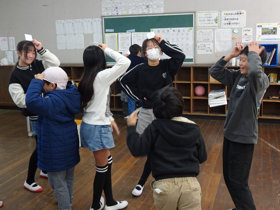 今日の昼休みにふれあい班遊びをしました。新聞ジャンケン、絵しりとり、だるまさんの一日、NGワードゲームなどの遊びを各班の6年生が用意し、32の班に分かれて楽しみました。短い時間でしたが、異学年の友達との交流が深まった楽しいひとときになりました。