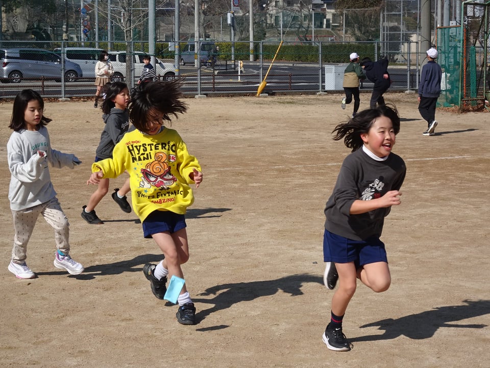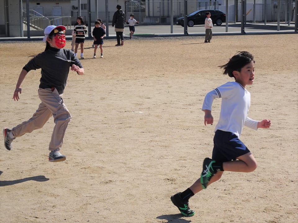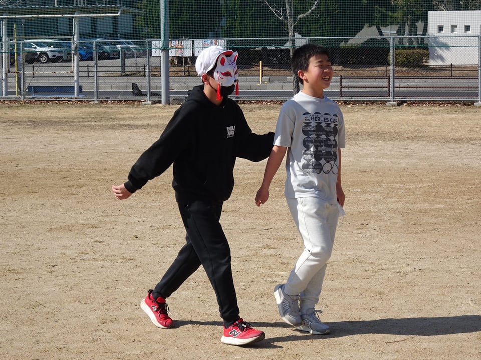 今日の昼休みは、各学年の2組の子どもたちが運動場に集まり、「神原逃走中」を行いました。このイベントの企画・運営は運営委員会と集会委員会の児童、鬼は主に6年生が担当しました。節分にちなんで、鬼のお面をつけて追いかける子もいて、子どもたちは必死で運動場をかけ回っていました。運動場に落ちている「福袋」の指令で、捕まっている仲間を解放してもらえたり、鬼の動きがストップしたりする工夫もされていました。何度も何度も捕まっては逃げ、捕まっては逃げを繰り返し、みんな時間いっぱい運動することができました。5日(木)には、昨日の雨で活動ができなかった1組の子どもたちが「逃走中」を楽しむことになっています。