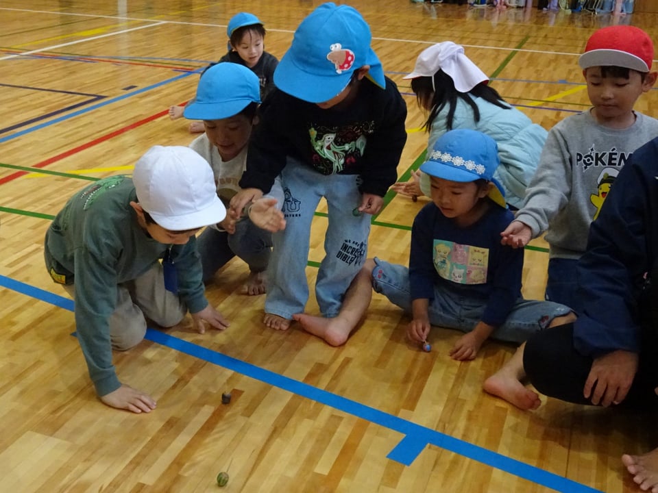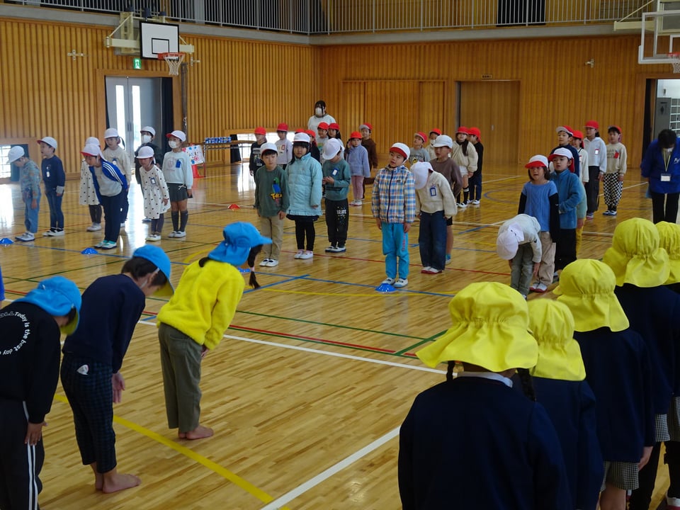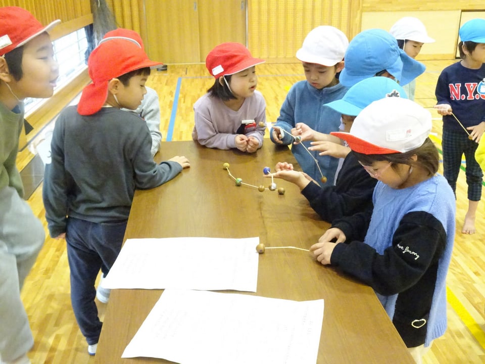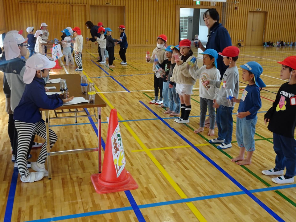 1年生が神原保育園と慈光幼稚園の園児の皆さんを招いて、交流会を行いました。1年生はこの日のために、どんぐりなどの材料を使って、ボーリング、マラカス、けん玉、どんぐりごま、的当て、やじろべえの6つの遊びを用意しました。いつもお世話してもらう立場の1年生が、今日は立派に園児に分かりやすく説明したり、優しく案内したりしてくれて、とても頼もしく思いました。今回の交流会をきっかけに、これからますます園との連携を深めていきたいと思っています。園児の皆さん、ご参加ありがとうございました。