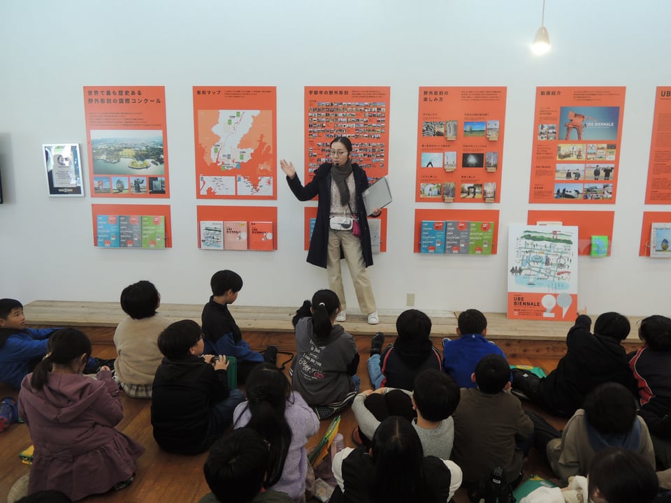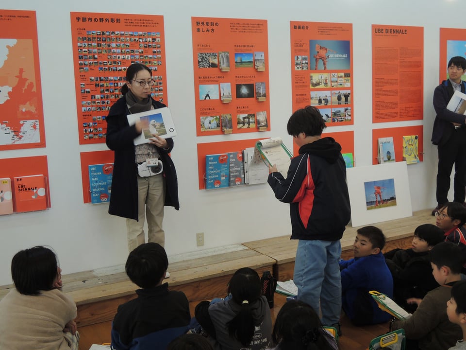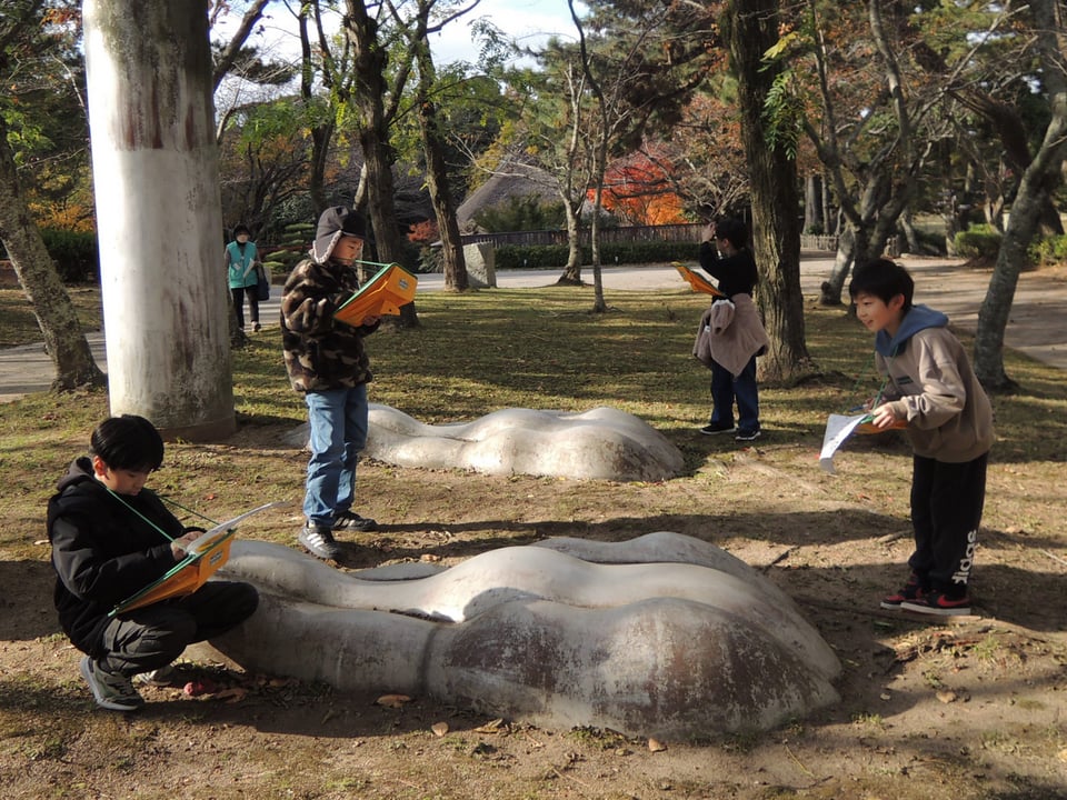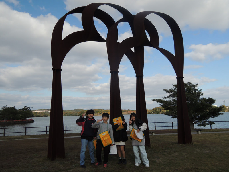4年生がときわ公園に行き、野外彫刻鑑賞をしました。子どもたちはグループに分かれて、15点の野外彫刻を見て回り、彫刻に触ったりいろいろな角度から見たりしては、感じたことをメモしていました。「緑と花と彫刻のまち」宇部を体感できた学習になりました。