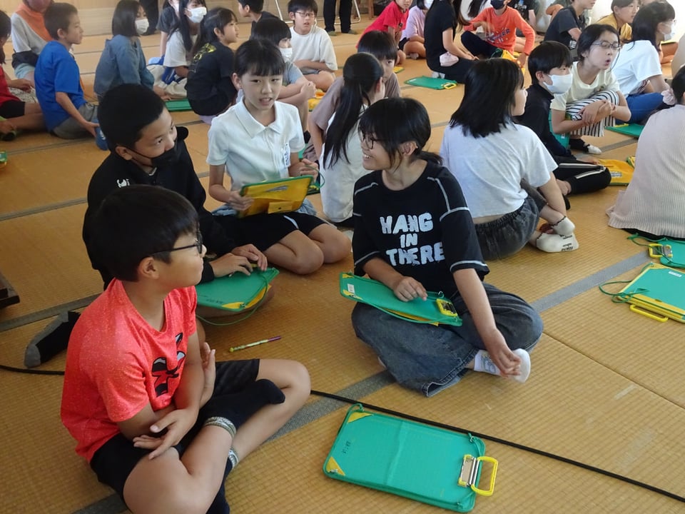 宇部高専の学生6名による世界遺産についての出前授業がありました。参加した5年生は、グループで全18問のクイズを解きながら、アジアやヨーロッパの世界遺産についての理解を深めていました。学校生活のことも教えていただくなど、学生の皆さんとの交流もできた楽しいひとときになりました。