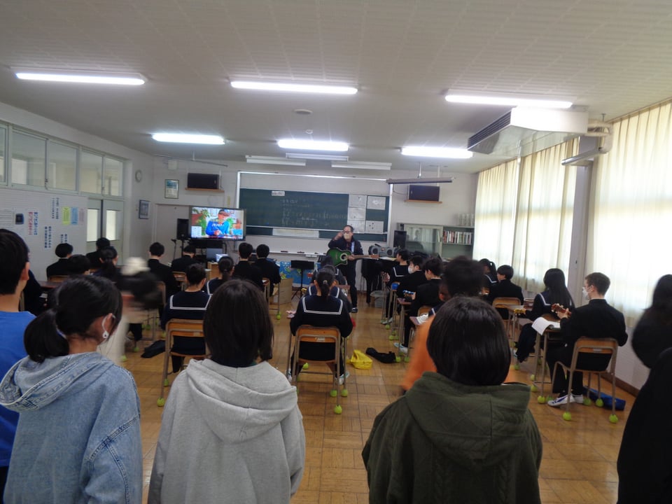 6年生を対象に、神原中学校の入学説明会がありました。前半は中学校での教科担任制の話や部活動、校則などの説明がありました。後半は教室や音楽室で行われていた授業を見学しました。実際に話を聞いたり、様子を見たりすることで中学校の雰囲気がよく分かったようでした。