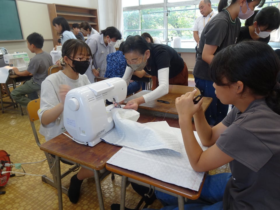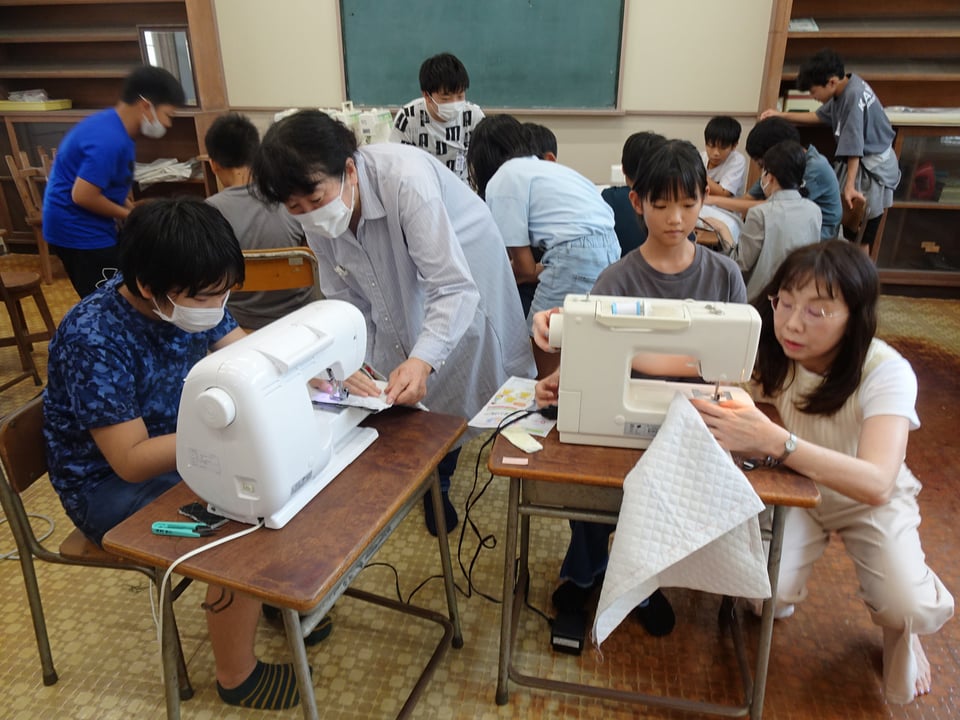 6年生が家庭科の学習でナップサック作りをしています。今日は1組の授業に8名の地域ボランティアの皆さんに入っていただき、しつけ縫いができた子からミシンを使って袋の両端を縫っていきました。たくさんのボランティアの皆さんのおかげで、とてもスムーズに作業を進めることができました。また、至る所で会話が弾んでいる様子を見ることができました。明日は2組の授業のお手伝いをしていただくことになっています。ボランティアの皆様、明日もどうぞよろしくお願いします。