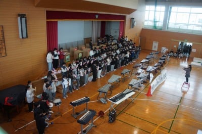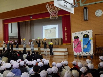 卒業まであと11日。6年生を送る会を行いました。各学年からは、6年生へのありがとう!6年生がんばってね!の気持ちを込めたたくさんのプレゼントを贈りました。6年生からは、すてきな演奏とパフォーマンスの披露。みんなのこころにのこる時間となりました。5年生からの巨大すてきポイントは、見ごたえがあります。