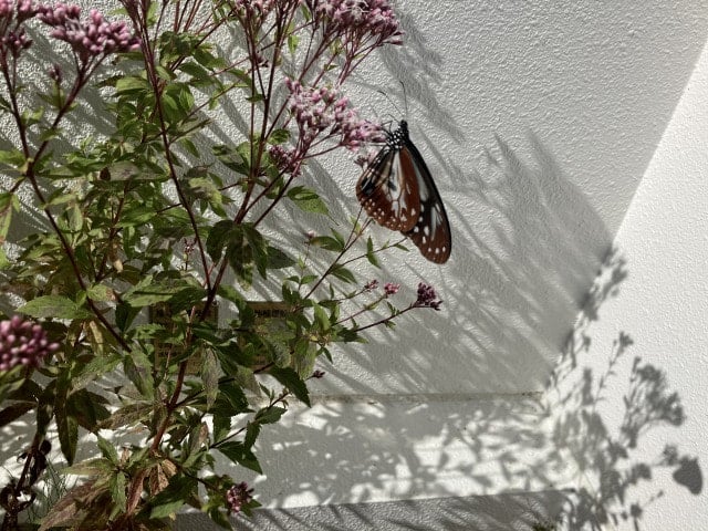 新校舎前のフジバカマにアサギマダラが飛来しています。地域の方から頂いた苗を植えたのが2年前。先週から飛来してきています。今日は、2頭見つけました。旅するアサギマダラが、フジバカマを見つける能力に驚かされます。県内にもたくさん飛来してきているようです。