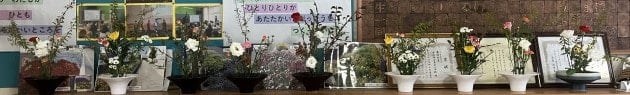 お花クラブのみなさんが花を生けて飾ってくれました。いつもすてきな花をありがとう。