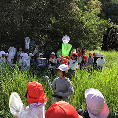 1年生は9月9日に、2年生は9月11日にビオトープへ行き、自然学習をしました。草むらに入り、網や手を使って、楽しく虫取り…