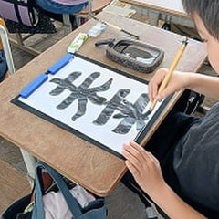 4年生は、習字教室を行いました。宇部市の伝統工芸品である赤間硯を使い、墨をすって文字を書く体験をしました。赤間硯の感触や…