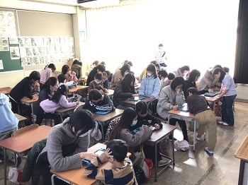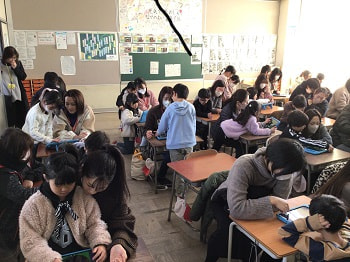 12月9日(火)に2年生の親子ふれあい学習がありました。今年は最初に各教室でタブレット学習体験をしました。子どもたちが作成した九九の問題を、保護者のみなさんが答えました。その後運動場に出て、焼き芋をしました。自分たちで育てたサツマイモを一緒に美味しくいただきました。