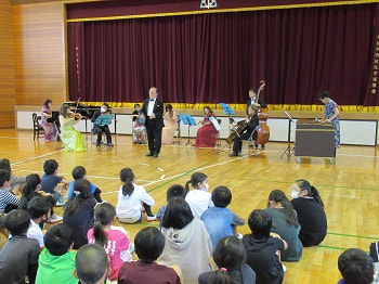 新型感染症の影響で、4年ぶりの移動音楽教室となりました。やはり本物の演奏を目の前で生で聴くのは素晴らしいです。ますます音楽に親しんでほしいと思います。