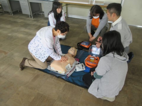ずいぶんと前のことになりますが、4月6日に教職員による救急救命とアレルギー対応に関する研修を行いました。外部から指導者をお招きして、講話をしていただいたり、実技への助言をいただいたりしました。実際にやってみると様々な疑問が浮かんできて、講師の先生に何度も繰り返し質問する教職員の姿が多く見られました。子どもたちが安心して日々過ごせるために、いざというときの備えをしっかりしておくための学びの時間でした。