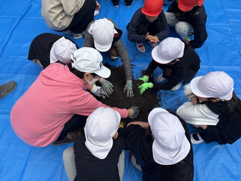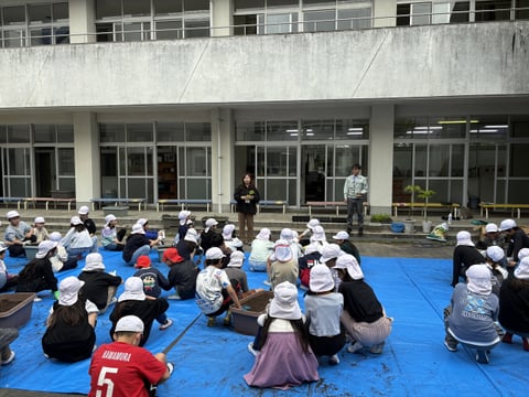 4年生が本日、環境学習の一環としてグリーンカーテンとなるゴーヤの苗植えをしました。市役所から講師2名をお招きして、事前に室内での座学を行い、その後、中庭に出て作業を行いました。自然を活用したエコの取組を学ぶことで、家庭でもできるエコが実践できるのではないかと思います。夏に向けてゴーヤの成長が楽しみです。