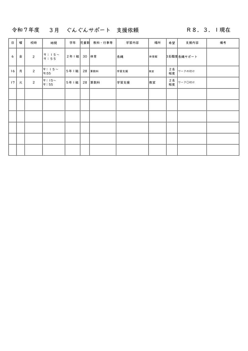 > ぐんぐんサポート3月予定表