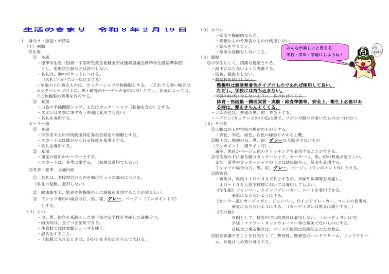 2学期から生徒会を中心に校則の見直しを行ってきました。昨日の生徒集会で前生徒会長のTさんから、全校生徒に説明がありました。