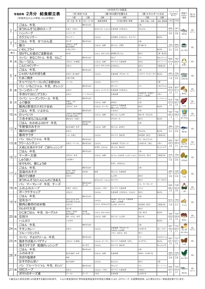 2月給食献立表