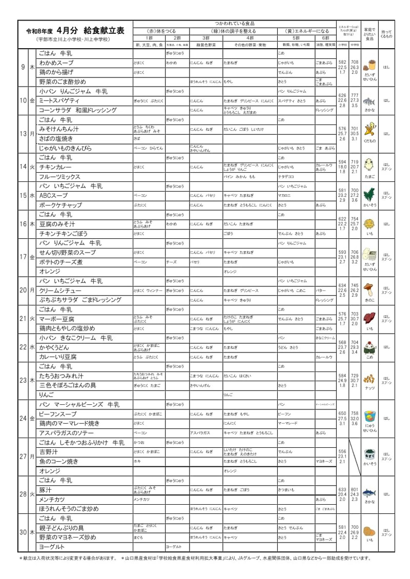 4月給食献立表
