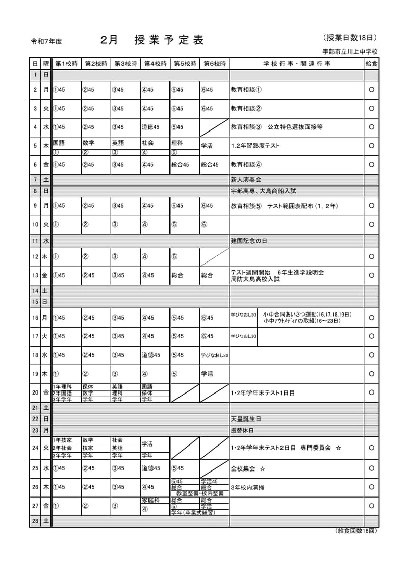 > 2月行事・授業予定