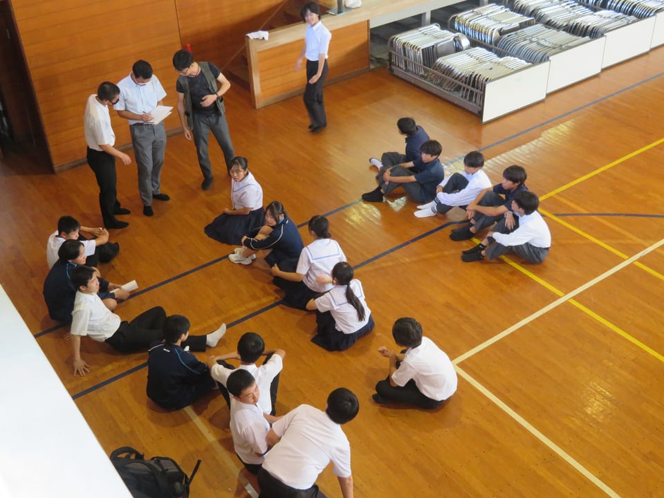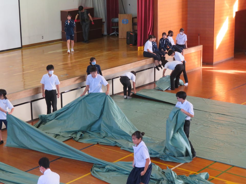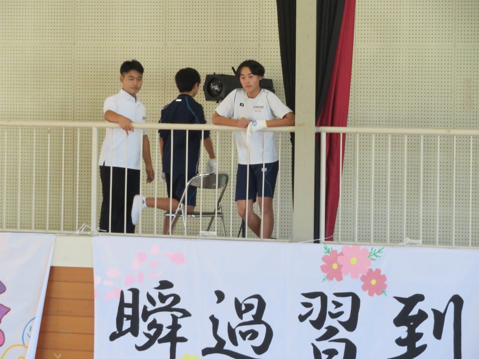 いよいよ文化祭が今週末に迫ってきました。今日は放課後に係別集会が行われました。写真は、体育館での舞台係・会場係・照明係の準備の様子です。担当の先生からの指示を受け、進んで行動している姿が多く見られました。みんなで文化祭を成功させようという雰囲気が感じられます。