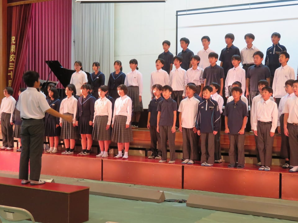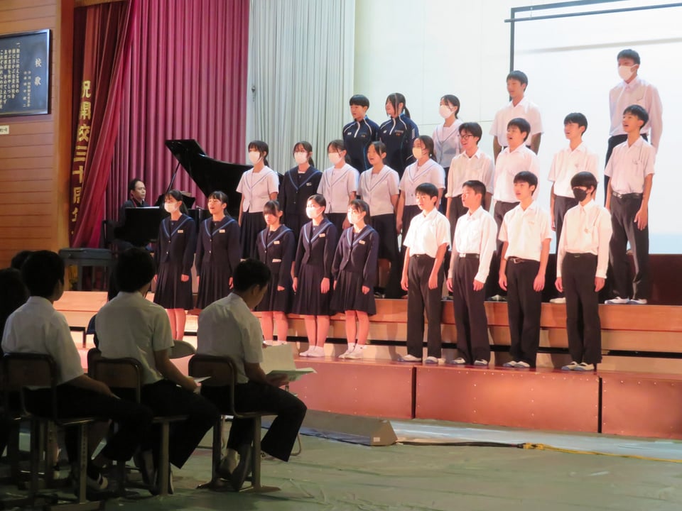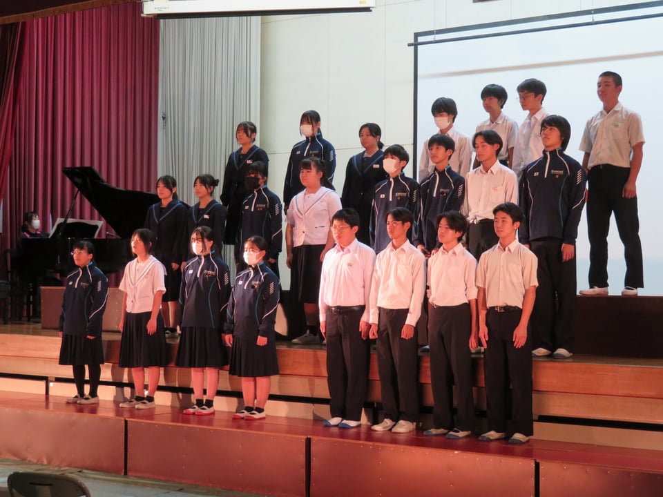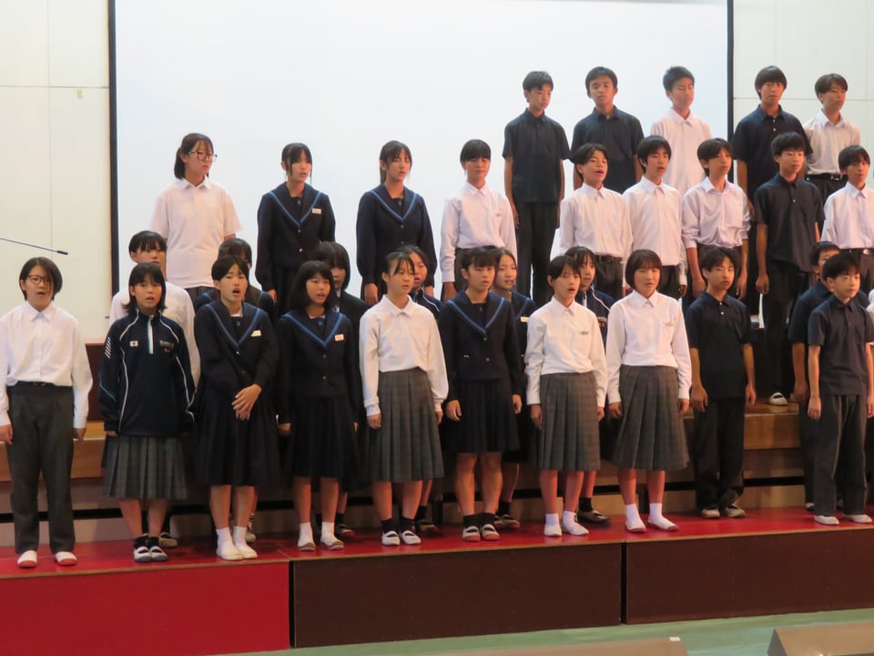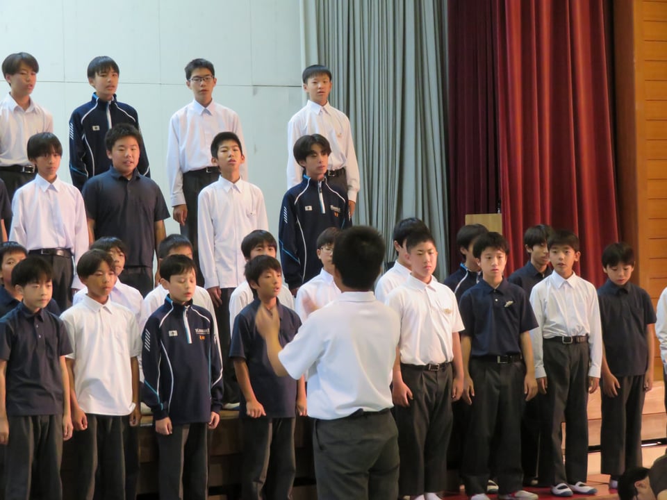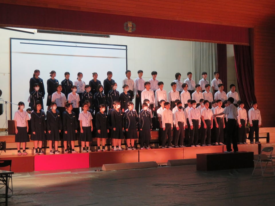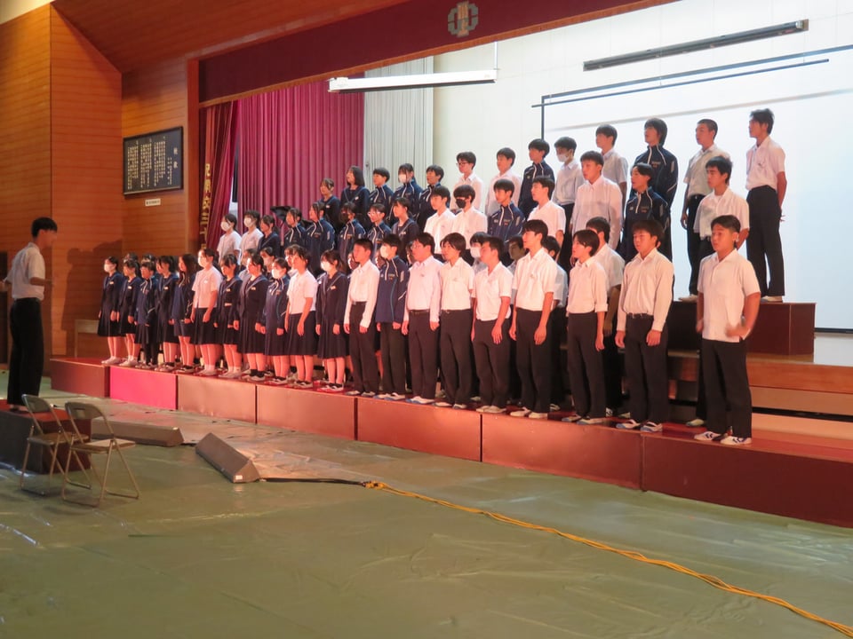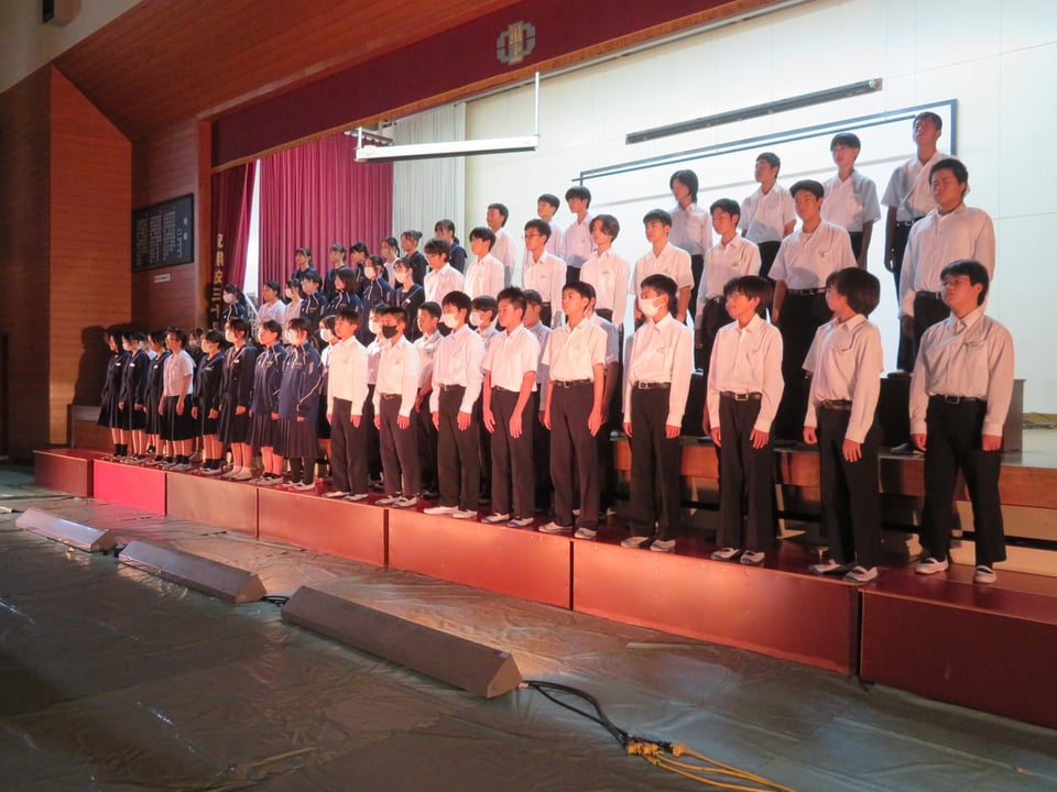 文化祭に向けて、各学年ごとに合唱リハーサルを行いました。ステージの立ち位置の確認や出入りの確認も終わり、いよいよ本番が近づいてきたなぁという感じです。全学年、そして3年生は学級ごとの合唱を準備しております。保護者の皆様、文化祭当日の合唱にご期待ください。