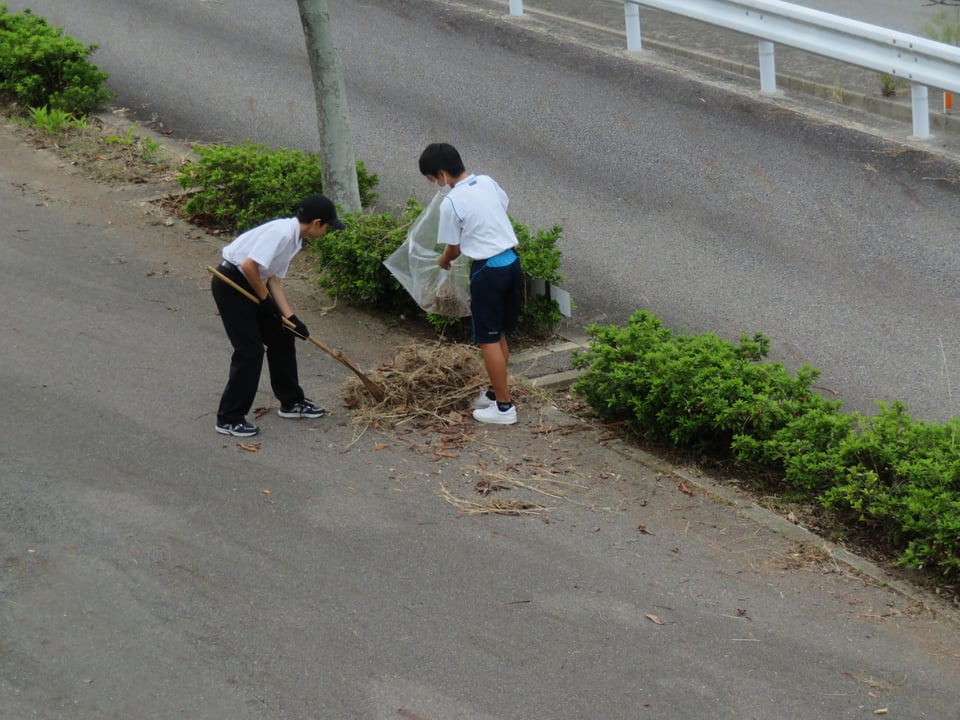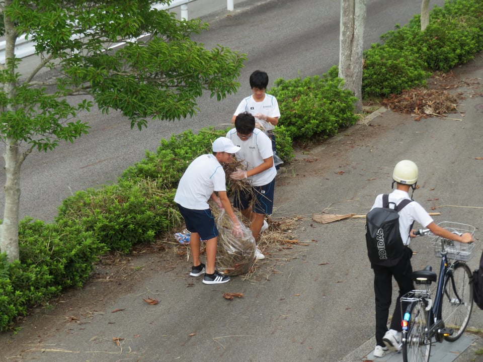 学校前の通学路には、枯草や落ち葉が大量にあり、放課後にボランティアを募ったところ約20名の生徒が参加してくれました。30分という短い時間でしたが、かなりの量の枯草や落ち葉が集まりました。これから文化祭に向けて、定期的にボランティア活動を行います。たくさんの生徒の皆さんの参加を待ってます。