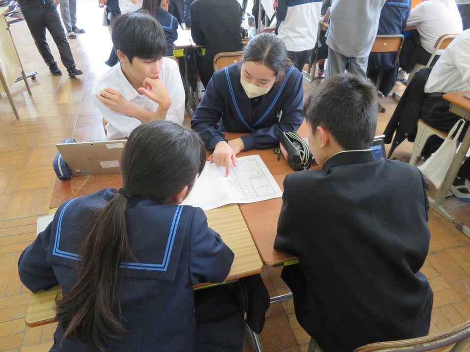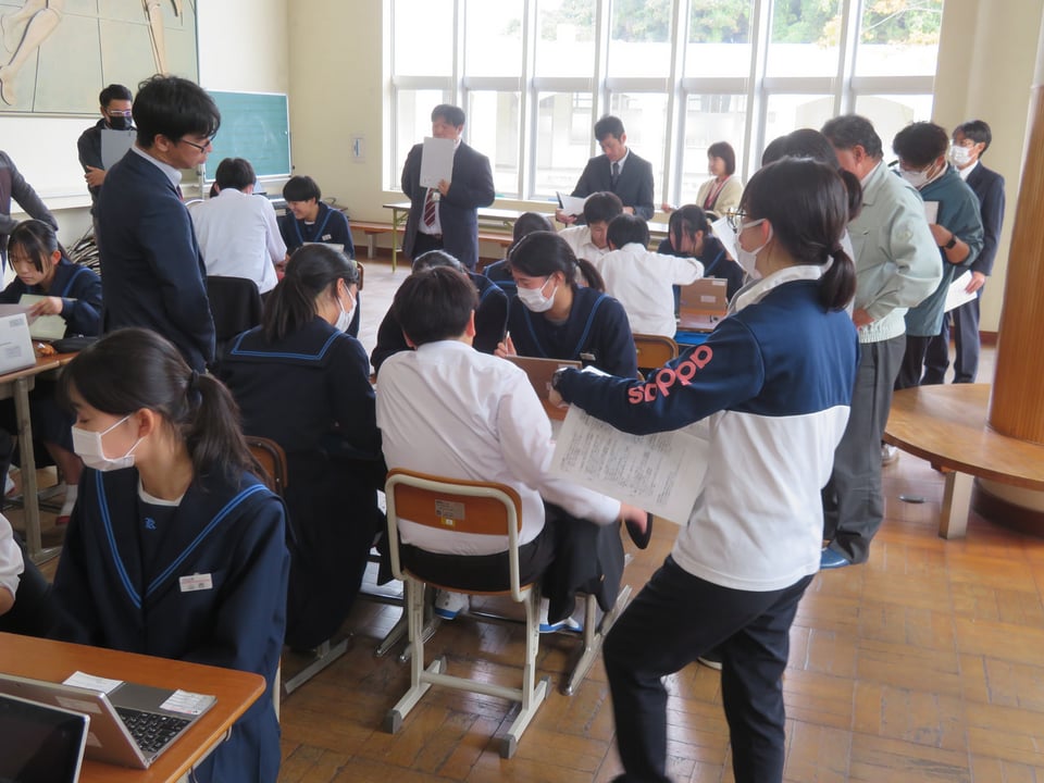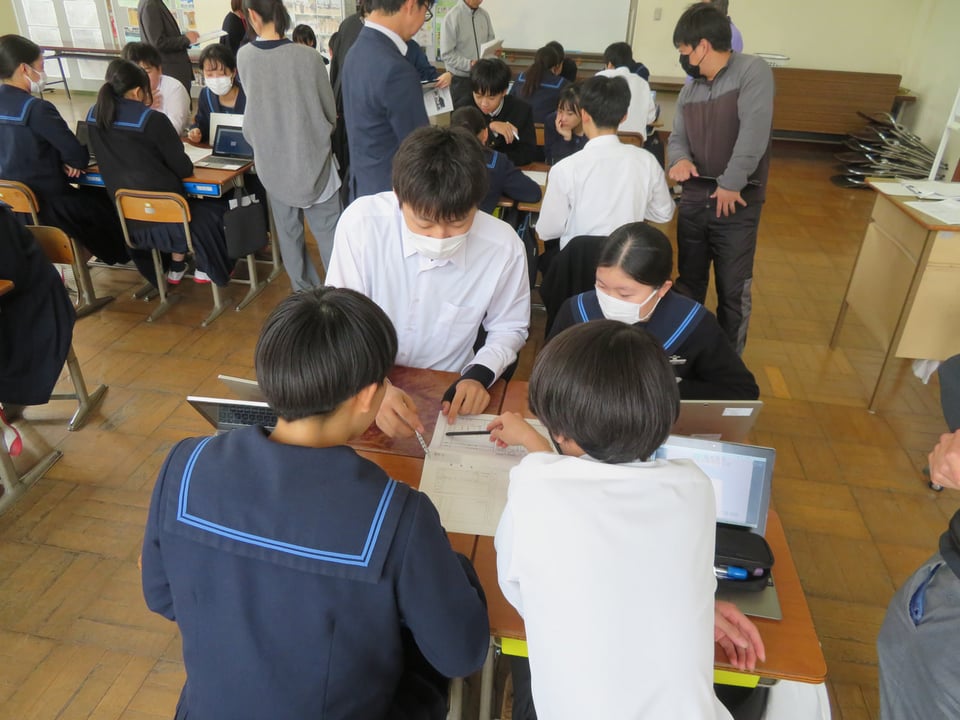 M先生による公開研究授業を3年1組で行いました。授業内容は学活「公平・公正な応募用紙とは」です。本校の教員のみならず、学校運営協議会の方、市教育委員会の方にもお越しいただきました。授業では、さすが3年生だなぁ~と思える深い発言もあり、生徒も教員も勉強となりました。
