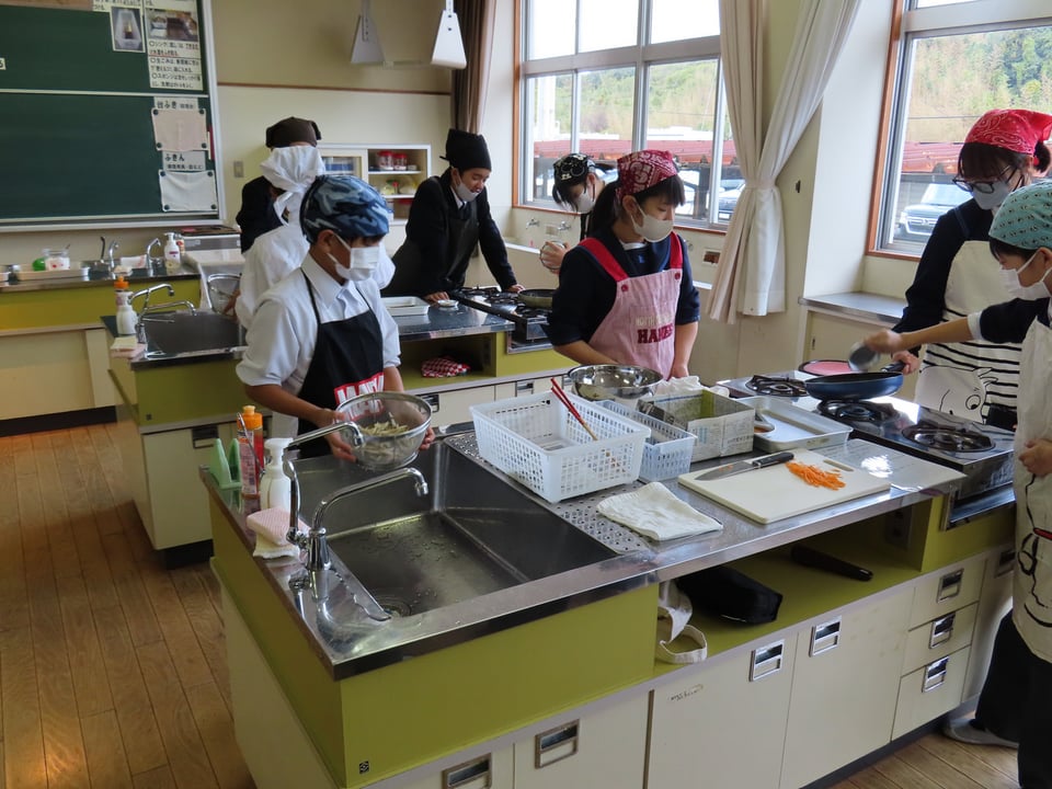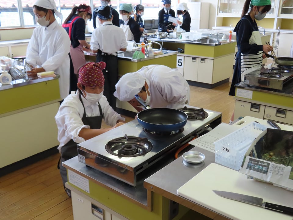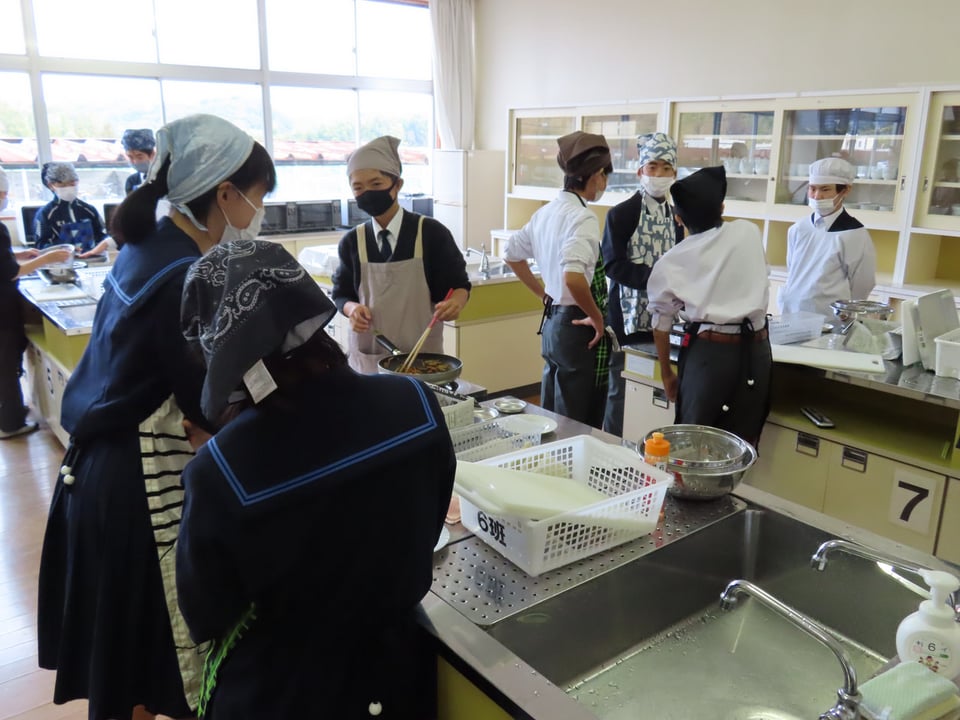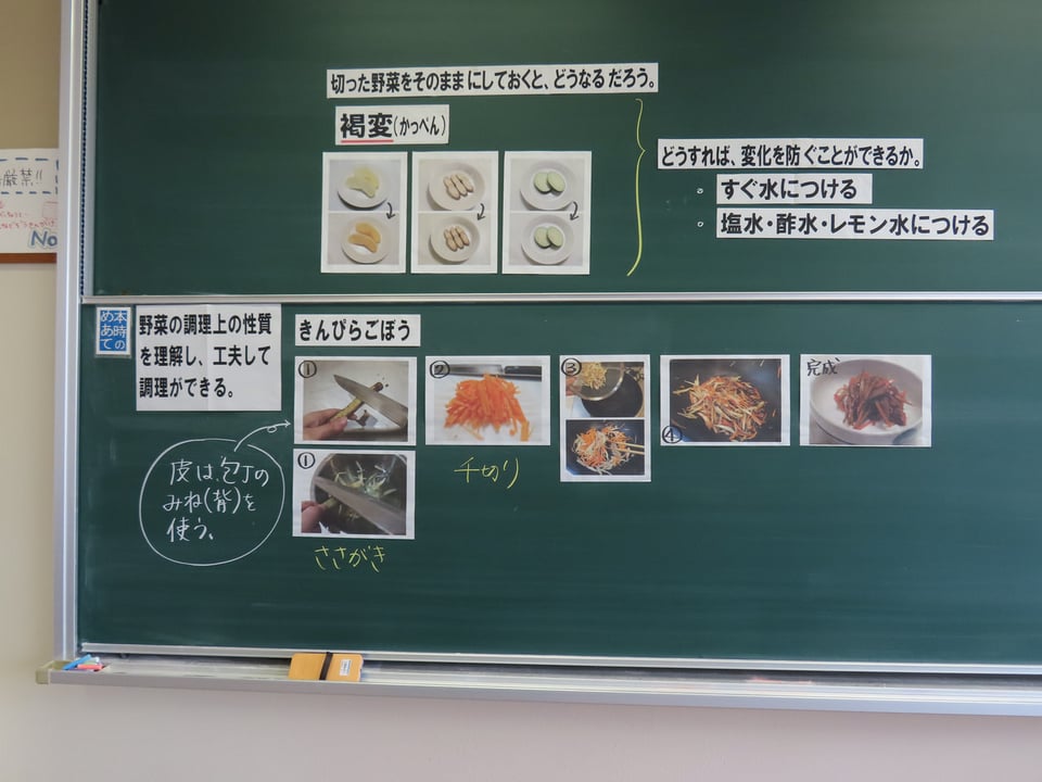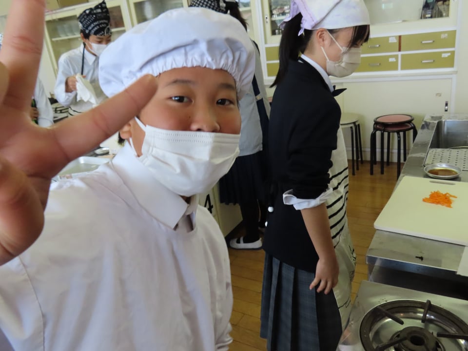 1年1組の家庭科の調理実習の様子です。中学校に入ってから初めての調理実習で、きんぴらごぼうにチャレンジしました。家庭科のI先生に、生徒は、どんな感想を言っていましたかと尋ねたところ「とっても美味しい」「味が薄い」と様々だったそうです。だた、きんぴらごぼうは、すべて生徒のお腹に収まり、元気に次の授業に行ったことは言うまでもありません。