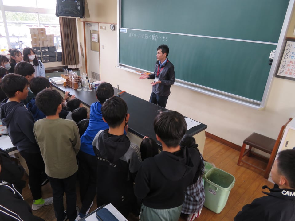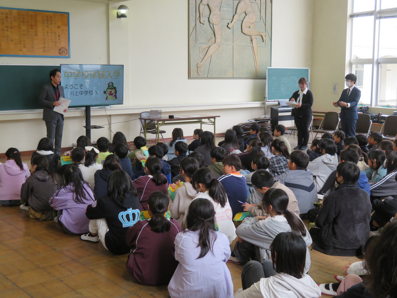 川上小学校の6年生を対象に体験入学を実施しました。内容は、授業を受けたり、中学校生活の紹介スライドを見たり、部活動を見学したりしました。理科はガスバーナーの使い方を学習し、音楽は中学校の校歌を習いました。今回の体験入学をとおして、中学校入学への不安が少し減ったのではないでしょうか。6年生のみなさん、5か月後の入学、待ってますよ。