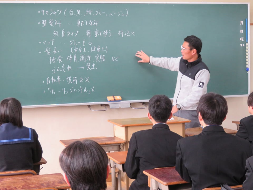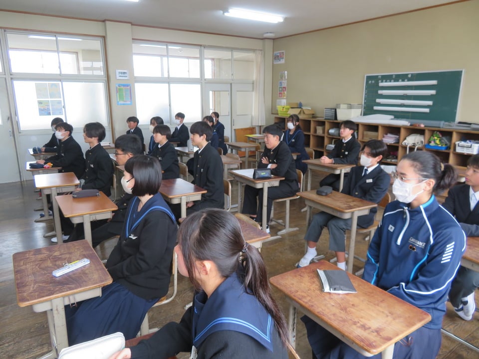 今年度の校則見直しについて旧生徒会役員を中心に行っていましたが、3学期から新生徒会役員と1・2年総務委員が引き継いで話し合いを進めています。現在、靴下の色・頭髪のきまり・通学自転車のきまりについて、より学校生活を過ごしやすく、また時代にあうように見直しを進めているところです。