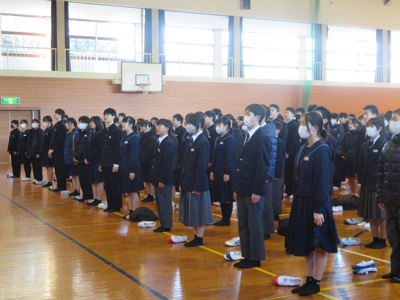 3学期始業式の様子です。校長からは、「3学期は次の学年・学校に繋げる0学期である」ことを話しました。3学期、3年生の授業日数は40日、1・2年生は48日です。ぜひ、これまで以上に充実した学校生活にしていきましょう。