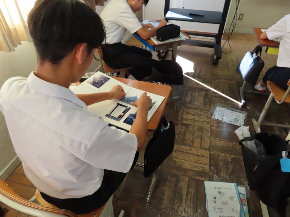 3年生は総合的な学習の時間を使って、劇の他に展示として「修学旅行のアルバム」を制作しています。思い出の写真をレイアウトを工夫し、楽しみながら貼っています。当日の展示が今から楽しみです。多くの方のご来校をお待ちしています。
