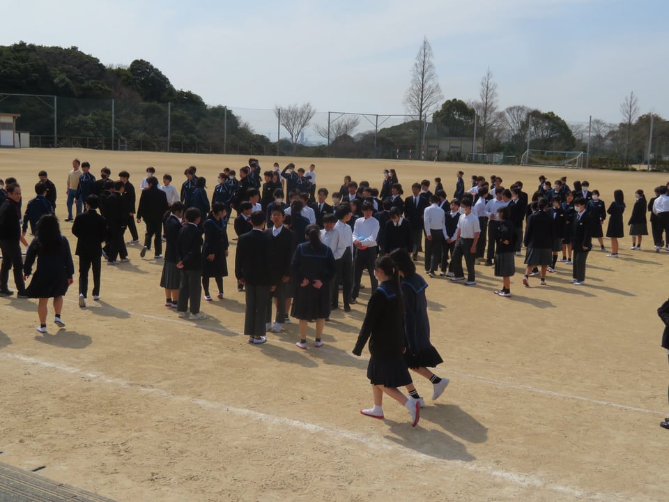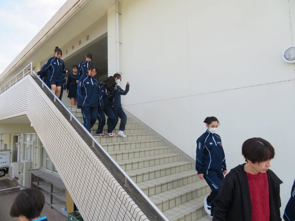 昼休みに日時・場所等を事前に告げないブラインド型避難訓練を実施しました。1学期は、担任の誘導による訓練、2学期は自身が避難経路を考えての訓練、そして今回。回数を重ねる度に、より実践的な訓練になっています。生徒のみなさん、もしもの時は、お互いに高い意識をもち、声をかけ合うことが大切ですね。