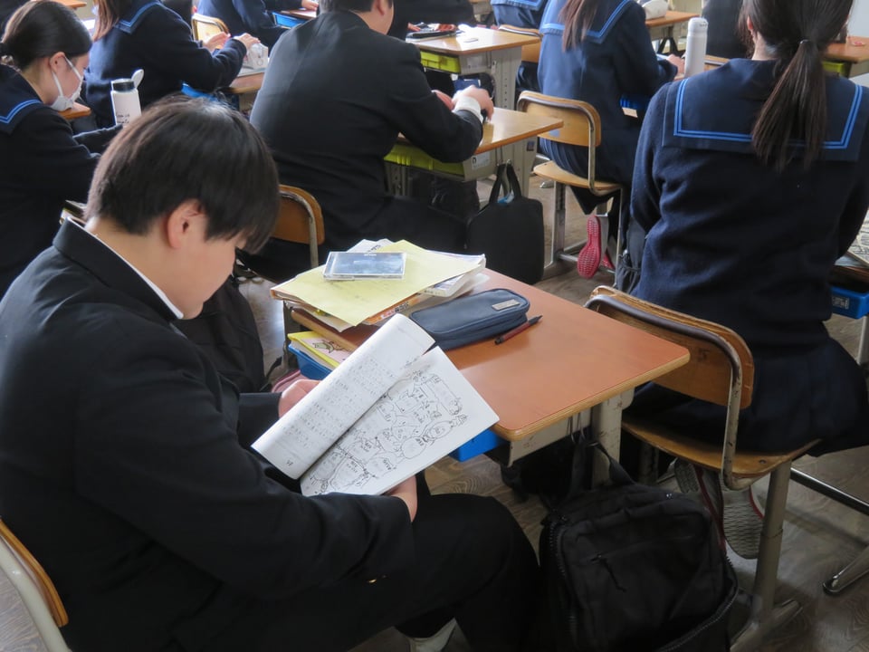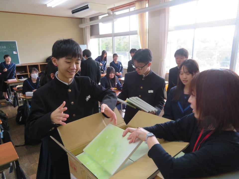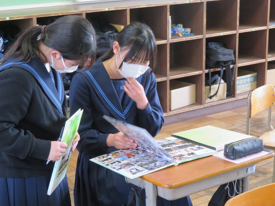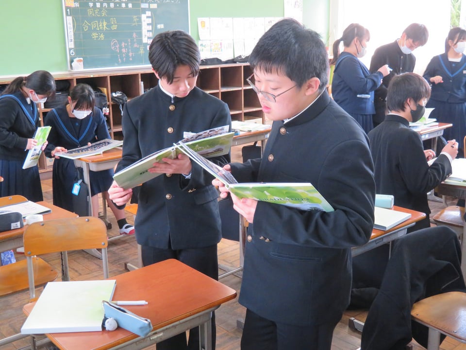 3年生の各学級で卒業アルバムと文集が配付されました。さっそくお互いにアルバムを交換しメッセージを書いてもらっていました。これから5年・10年・20年と経ってもこのアルバムを見るたびに中学校生活のことが懐かしく思い出されることでしょう。