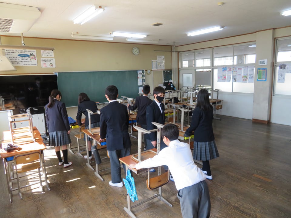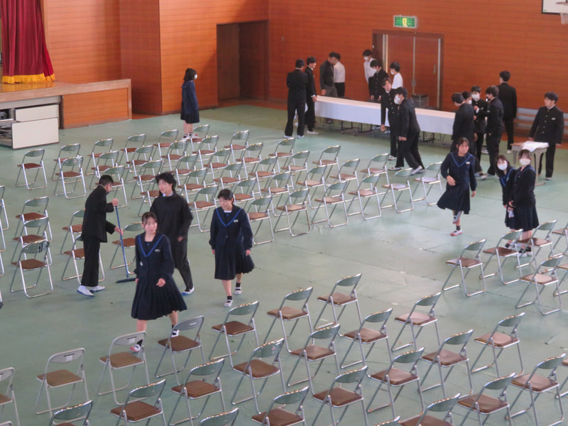 卒業式が明後日となりました。午後から1・2年生で卒業式の会場準備を行いました。体育館を2年生、その他の場所を1年生が担当しました。お世話になった3年生に気持ちよく卒業式を迎えてほしいという思いからか、いつも以上にしっかりと取り組んでいました。土曜日は、いい卒業式になりそうです。
