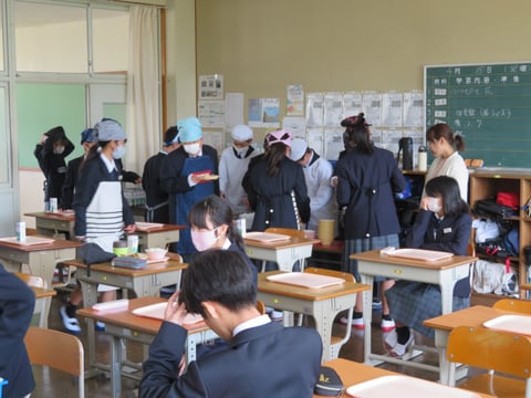 4月15日(火) 1年生:給食配膳の様子