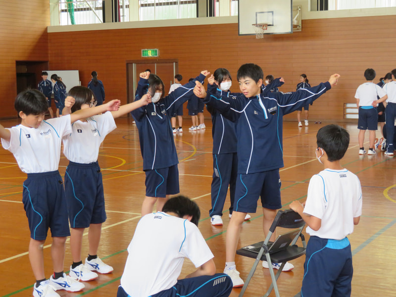 運動会で披露する「川上ニュー南蛮」の練習が始まっています。これまでの経験を生かし3年生が1年生に教えています。先週は2年生が1年生に教える時間もありました。教えてもらった側から教える側へと立場が変わり、先輩から後輩へ脈々と受け継がれる川上中のよき伝統となっています。