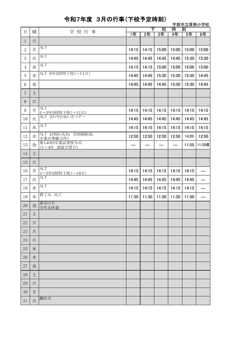 令和7年度 3月の行事予定(下校時刻)(89KB)