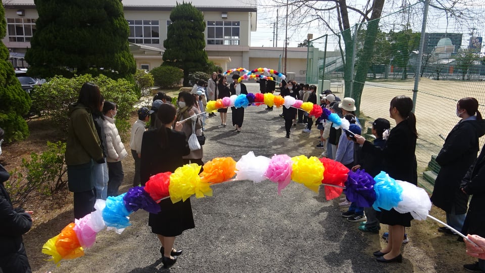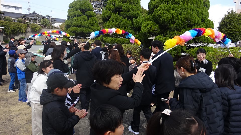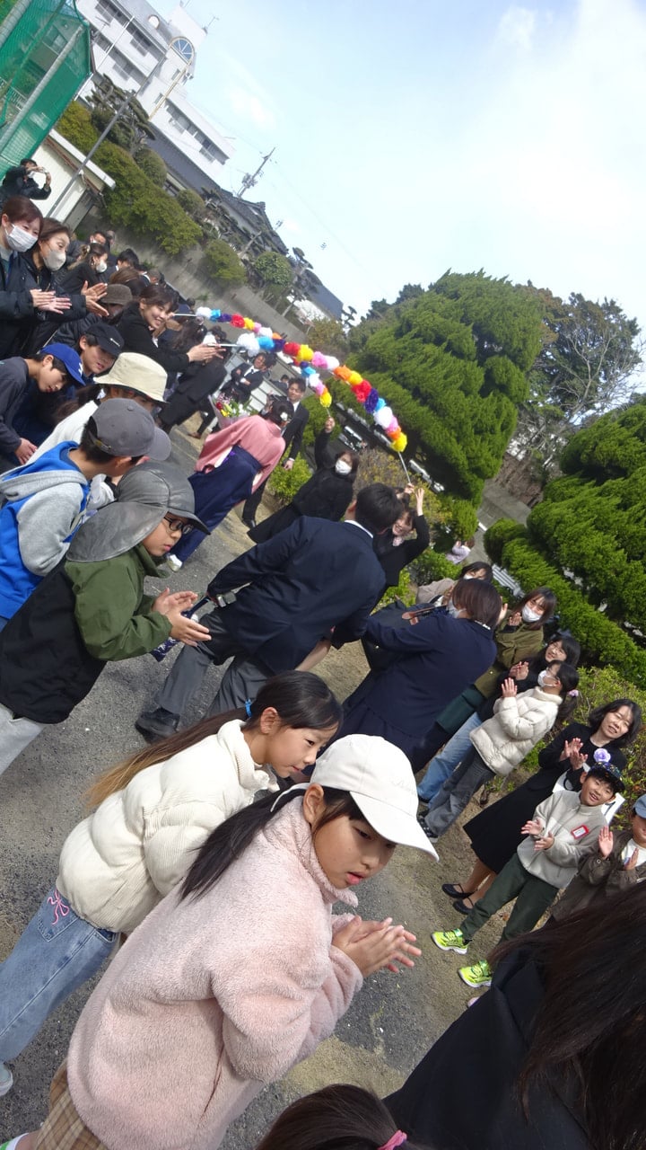 3月13日(金)6年生の門出を祝い、第68回卒業式が厳かに執り行われました。式終了後は、職員や学童の子供たちに見送られての出発でした。