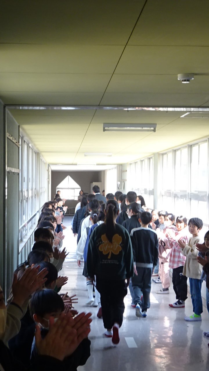 3月12日(木)全校で翌日卒業する6年生のお別れ式を行いました。たくさんの拍手の中、6年生が胸を張って通り過ぎる花道でした。