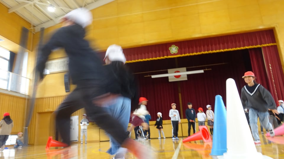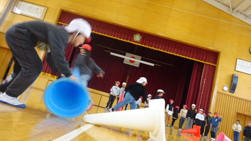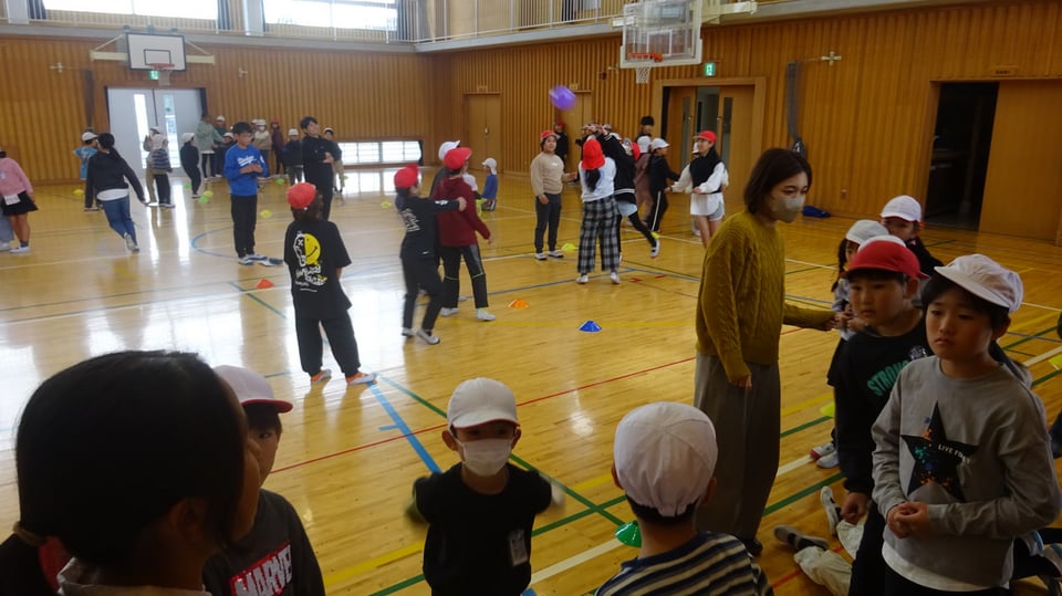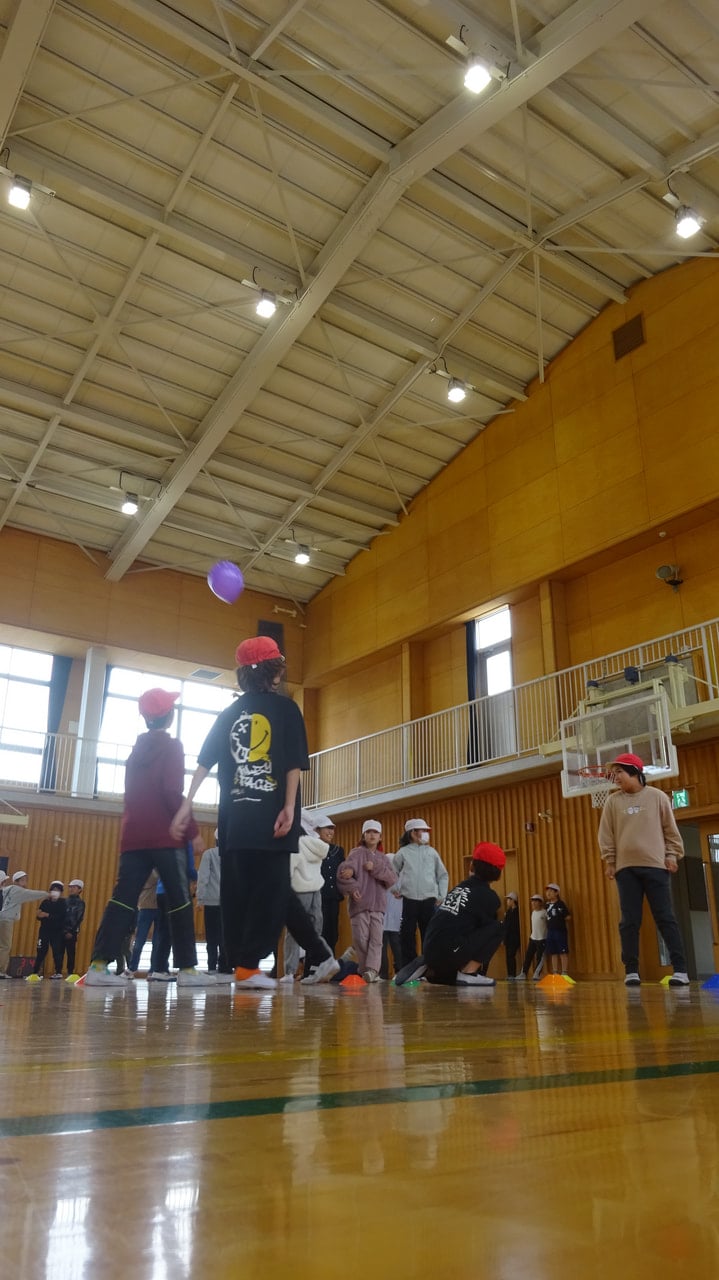 11月12日(木)昼休みに体育館で集会を行いました。低中高に分かれての開催、今回は中学年が「コーンたおし」と「風船バレー」を行いました。保健体育委員会と運営集会委員会の5,6年生が企画・運営をがんばっていました。